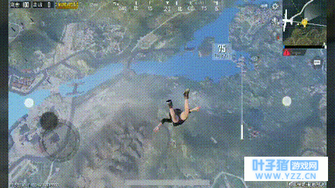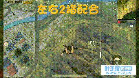 左右两指配合跳伞,有点像二指压枪的感觉,从而达到对速度的调节,左指斜向目标地点,右手下拉进行速度与方向的调节,如图。
