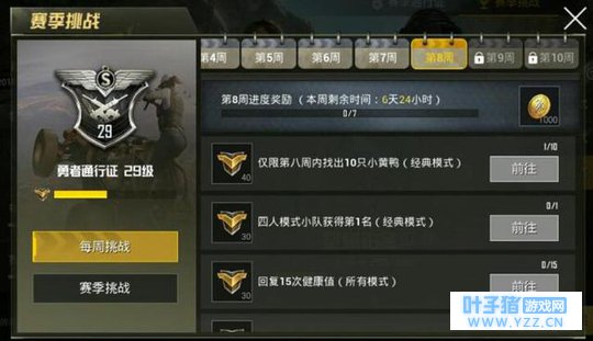 今天的五点一过,绝地求生刺激战场就更新了新的赛季任务了,第八周的赛季挑战中有一项赛季挑战就是集齐10只小黄鸭,具体情况让我们来看看吧! 收集10只小黄鸭的任务是属于绝地求生刺激战场官方在第八周给出的赛季调整任务。 绝地求生集齐10只小黄鸭有什么奖励: 此次的任务是在第八周内收集完成10小黄鸭任务,完成的玩家可以获得40枚赛季徽章的奖励哦! 本文来源:今日头条,作者:趣味百晓僧,转载请注明来源。 |