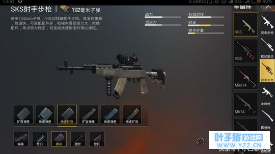 弹夹配件: SKS对于弹夹的需求并不是很高。毕竟不需要,也不能开启全自动,子弹够用即可!毕竟我们凡人 还是做不到一秒把子弹打光的!