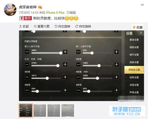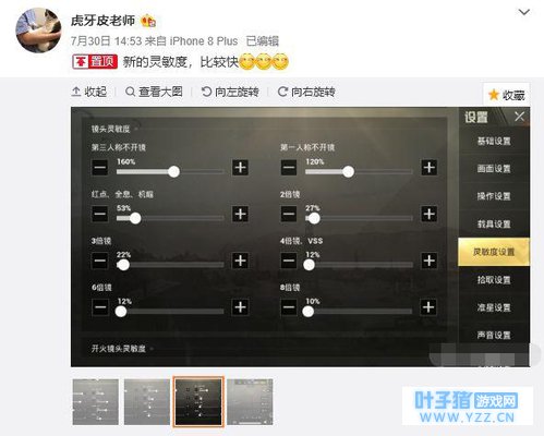 绝地求生·刺激战场作为绝地求生端游的授权手游凭借还原度极高吸引一大批的玩家们热爱。但是手游与端游中都有着一个设置影响游戏。那就是灵敏度了,不论是在手游还是端游每个人的灵敏度都是不一样的。手游又出现了一些新的设置:陀螺仪灵敏度。很多压枪不习惯手指压枪的人都是使用的陀螺仪,但总是找不到合适的灵敏度。这次小编就给大家带来陀螺仪大神虎牙主播骚皮皮,皮老师的陀螺仪灵敏度!