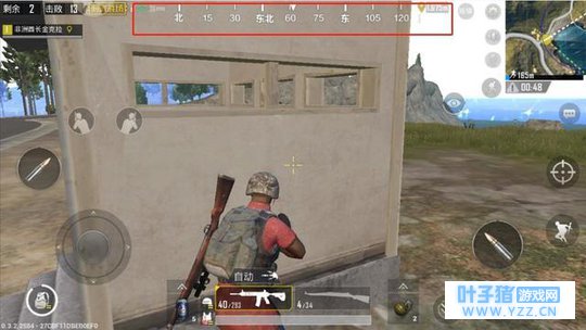 2、和队友报位置 在进游戏之后,手机屏幕正上方,会有一个罗盘,当你对着西边的时候,正中间会有一个“西”字。这个罗盘是以你的位置为基准,显示你面对的方向的,虽然你本身与队友基本不在一个相同位置上,但大致方向还是没错的。 如“280到300之间树大树后面,有人在蹲着,小心!”。遇到敌人不要慌张,报点越清楚队友才支援得更快。