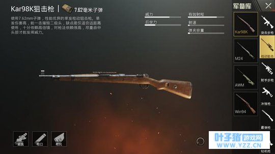 98K狙击枪是经常能找到的,上子弹和狙击时候的声音特别的好听。 SKS射手步枪的狙击效果非常好,而且他的装弹数比其他狙击枪多一些,但是他很吃配件,如果没有满配不推荐使用,后坐力也是极高的。