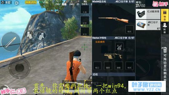 除了WIN94以外,还需要一把能装倍镜的枪械,同时带两个倍镜。这里言语用的是红点和维克托。另外还需要一辆车,对你没看错,就是载具。