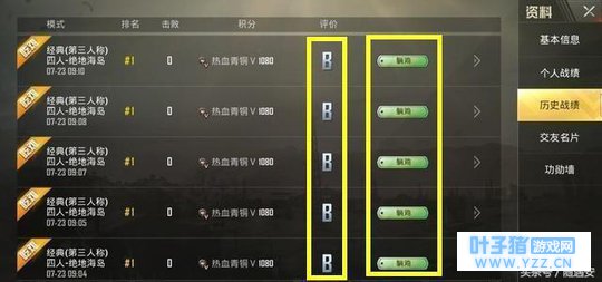 小编连续的看了他2页的历史战绩,没想到竟然这么可怕!段位非常的低,还不如小编呢!另外游戏中的评价表现那也是一水的B,标签都是躺赢!