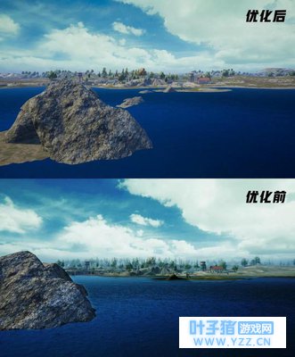 3. 海岛地图被优化,新增掩体和房区 相信各位玩家都有这样的经历,就是在海面上转移的时候,往往会因为没有掩体,导致被别人打下船,变成盒,在新版本,这样的情况就会很少发生了!在新版本中,海岛图部分地区增肌了小型陆地和岩石,为玩家提供了更多的掩体,并且在在Z城的东面,军事基地西侧大桥附近,防空洞附近增加了建筑群。