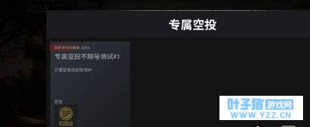 测试服游戏大厅右上角,头像旁边多了一格空投箱图标,点开是「图二」弹窗。
