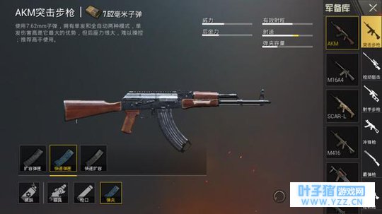 快速弹夹。 估计大家都以为快速弹夹的作用只有加快换弹速度而已,但其实快速弹夹还有一个作用就是加快射速,射速快在近距离对枪的时候是很有优势的