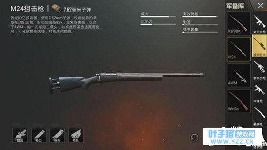 M24是目前栓动狙伤害最高的一把枪,不过相对于98K来说,M24更加稀缺。M24也是使用7.62MM子弹,因此不用单独携带子弹,而且对于栓动狙来说,子弹准备50左右就差不多。不过M24配件不能跟步枪想通,因此配件搜寻就需要更加努力。 本文来源:今日头条,作者:海峡网,转载请注明来源。 |