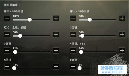 2/8 灵敏度系统我们不能用原来的,也就是必须是自定义才行,不然还是很难驾驭的,自定的跳伞,第三人物都是在120%的,而第一人物是在80%。