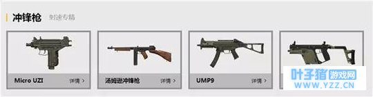AKM、M16A4、Groza、AUG、M416、SCAR-L,选择适合自己的步枪,这六把的确是不好排名的,有的是空投中获得的,有的话直接减空投道具,这种武器都会稍微给力一下。常见的有4把武器,我们的排名就是M416>AKM>SCAR-L>M16A4。 冲锋枪介绍: