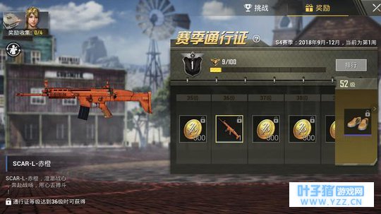 然后就是枪械皮肤,在新赛季中,Scar-L迎来了新皮肤,赤橙Scar-L,这个皮肤和之前的AKM和UMP9是一个系列的,玩家只要赛季通行证达到36级,就可以解锁这款皮肤了。