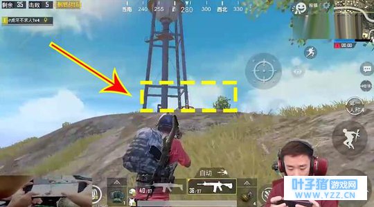 拿斜坡上面的车举例,比如说,敌人此时在上图箭头所指方向(汽车顶部)正在往下走,你刚好看到他,那么,这个时候如果你开镜打的话,因为直线距离的原因,你是看不到他的,所以是不能在第一时间将他击倒的。