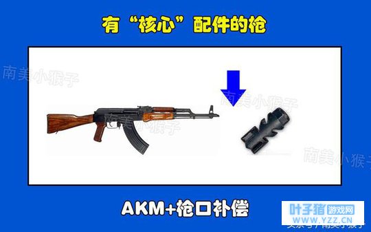 4、AKM-枪口补偿, 在刺激战场中,AKM的核心就是枪口补偿,对于一个FPS游戏爱好者来说,AKM一直都是不变的灵魂枪。大家都知道AKM的弊端就是后坐力太大了,而枪口补偿对于后坐力大的枪而言,可以弥补大部分的后坐力问题,喜欢用AKM的玩家,一定喜欢找枪口补偿。