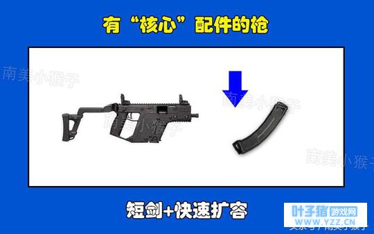 2、维克托-快速扩容, 在刺激战场中,维克托的核心就是快速扩容。不少大神玩家或者信仰玩家都会喜欢使用维克托这把神枪,又称短剑。这把枪的配件是真的多,和M416是一样的,不过这把枪初始的子弹容量只有13发,如果没有快速扩容而其他满配的话,也还不如不要。对于射速快的维克托而言,13发瞬间可以打完,如果没有扩容,遭遇战简直就是找死。