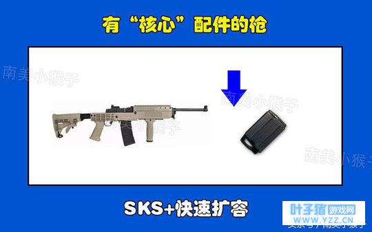 5、SKS-快速扩容, 在刺激战场中,SKS这把枪的核心就是快速扩容,大家都知道这把枪是一把连狙,初始的弹药只有10发。而伤害并没有非常高的它,只能看连点来完成击杀。SKS对于奔跑中的敌人来说是非常考验预判的,很多玩家会一下子把10发都打完换弹图中让敌人跑了。有了快速扩容后,这把枪就飞上枝头变凤凰了,20发正常玩家都能打到好几发敌人。 好的小伙伴们,你认为还有哪些枪械是有核心配件的呢? 评论区交流一下吧。 本文来源:今日头条,作者:南美小猴子,转载请注明来源。 |