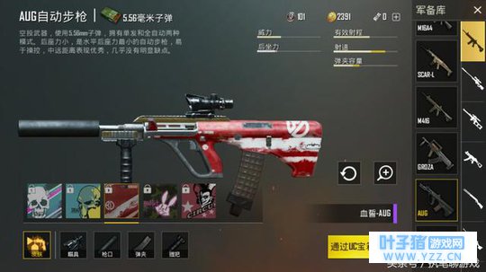 AUG——血誓空投步枪AUG绝对是众多玩家遇到必捡的步枪神器,这件“血誓”看起来也非常搭配,特别是一些细微的“做旧”处理,让人一眼看中就有种“低调的奢华”,相当的有安全感!
