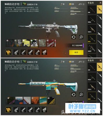M416——死亡收割、原野印象纵然M416历经多个版本的削弱,但依然有大批忠粉!所以无论《刺激战场》国服还是国际服,对于这把武器的关注度也相当高!可能由于个人审美观感,比较喜欢“死亡收割”这种皮肤,看起来有一种低调的酷炫!而原野印象这种皮肤,在游戏君看来也有一些天然的“迷彩特色”,持枪在手中作为伏地魔,比其他皮肤更具隐藏性!