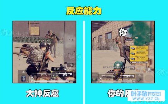 2、反应, 玩游戏其实就是锻炼大家的反应能力,有的人脑子快,但是手脚跟不上,有的人手脚快,但是脑子反应不够迅速。这就直接能看出你与别人的差距了。大神玩家反应迅速,被打第一时间反应过来是趴下还是跑去最近的掩体还是进行反杀。而菜鸟玩家第一先就直接懵了,可能有的玩家条件反射就直接趴下来怕怕了。