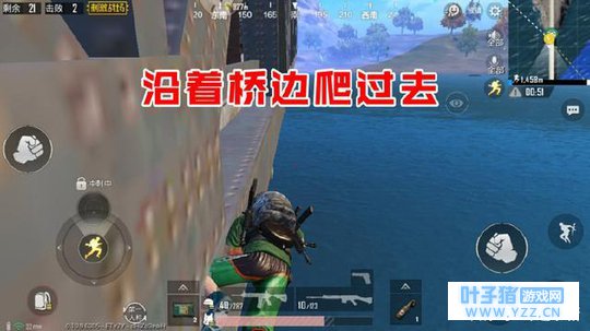 相信不管你是玩端游的绝地求生还是手游的刺激战场那么你一定有过被人堵桥的经历吧?一般大家碰到这样的情况,如果当时有交通工具的话,那么直接冲过去就行了,只要速度够快的话,那基本上掉一点血就可以了。或者是有的玩家感觉自己的枪法过硬可能会找个掩体,然后下来直接跟堵桥的玩家进行刚枪,但是成功的几率一般不是很高!那怎么做比较保险呢?其实你可以像上图一样的玩家的做法,直接爬到桥的高出上去,到了这个位置,不管你是要堵桥还是过桥那都是妥妥的没事。