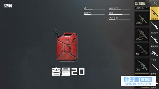 自从八倍镜不能装在步枪上面之后,这件物品就不是那么受欢迎了,到了后来3倍镜和6倍镜相继推出,只要是捡到了6倍镜和8倍镜,并且没有捡到狙击枪,而你的背包又满了的话,这时候可以选择把八倍镜给扔掉。毕竟6倍镜大部分的武器都能装,可是8倍镜只能装在狙击枪和射手步枪上,没有找到这武器的话,那么八倍镜就是一个放在背包里面的废铁。 TOP3、燃料(容量20)