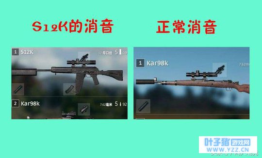 2.消音器的变化。对于大部分玩家来说,消音器并不是用来消音的,而是用来“装X”的,自己用着舒服就好了,尤其是7.62子弹武器当道的版本,消音更加令人心旷神怡。但是消音却也不存从物理学,竟然可以自由变换,装备在SKS、M416等主流武器上的消音,非常正常看上去也很舒服,但是如果装备在S12K这把武器上,却变得“又大又粗”,让小闲不自觉的(emmm),对不起跑题了。
