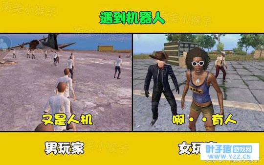 哈喽大家好,我是你们的好朋友南美小猴子。今天给大家分享的是《刺激战场:男玩家和女玩家的5大区别,遇机器人的反应这么大?》 绝地求生刺激战场这款手游在半年内已经吸引了数以千万的玩家加入,据知情人士透露,游戏里的女玩家达到3成以上。也就是说,10个玩家里,至少也有3个是女玩家在其中。在玩吃鸡游戏里,男生的优势天生就比较强,所以在游戏里,经常会有男生保护女生的时刻出现。 今天给大家说的是,在游戏里,男玩家和女玩家游戏里的5个区别,是你吗?