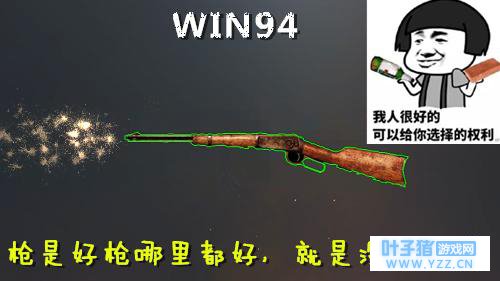 TOP2: Win94 使用0.45mm子弹,8发弹夹容量,单发拥有超过AKM的威力!小编不禁在想,这丫的还是0.45的子弹吗?这不科学,然而事实确实如此。一枪打中一级头直接死,二级头还剩一丝血伤害惊人,虽然是栓动但是射速和上堂速度都要高于98k。可惜的是它无法加装瞄具,只能加装98k子弹带,可玩性不高。