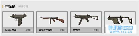 AKM、M16A4、Groza、AUG、M416、SCAR-L,选择适合自己的步枪,这六把的确是不好排名的,有的是空投中获得的,有的话直接减空投道具,这种武器都会稍微给力一下。 冲锋枪介绍 :