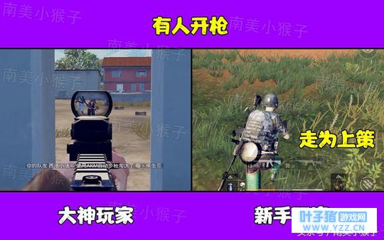 2、遇到敌人, 在游戏中,大神玩家遇到敌人的时候一般都是冷静分析,远距离立马切点射哒哒哒,近距离各种骚操作,左右摇摆枪法,拜佛枪法等。新手玩家遇到敌人,妈耶,慌得一匹,敌人100%打中我方,我方一波人体描边。靠!对方可能是挂!久而久之,大神枪法越来越好,新手吃鸡越来越苟。