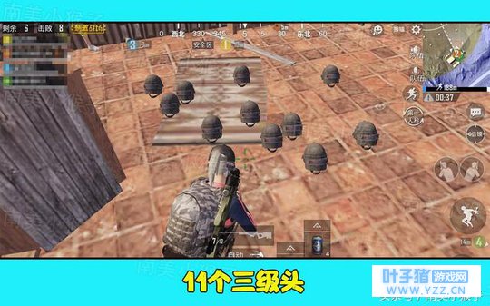 4、要知道在游戏里,三级头是所有大神玩家认为最重要的一个物资了。毕竟远距离除了AWM没有枪能对它造成威胁。这把4名玩家在沙漠地图中搜集了11个三级头!真的是第一次见过这样丰富的资源,如果决赛圈遇到了11个玩家全是三级头,那是什么样的场面啊!