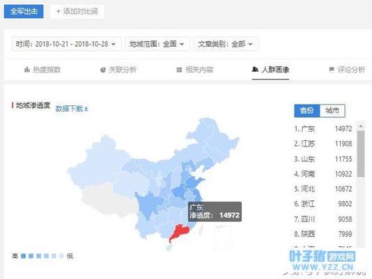 从上图大数据所示,恭喜广东省的玩家,摘得了第一名的桂冠。
