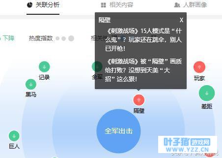 隔壁、战场、手游、口碑、玩家,这是全军出击最感兴趣的话题。 4、刺激战场和全军出击玩家,最喜欢讨论什么?在上面,我们已经讲了一个词,隔壁,那么这个隔壁是指谁呢?对了,就是刺激战场。 全军出击的玩家,似乎很喜欢讨论‘隔壁’刺激战场,而且,最感兴趣的就是哪家画质最强?
