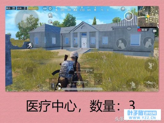 比起上面的餐厅,C字楼的名气显然要大很多,作为机场区域的主要建筑,C字楼拥有远高于其他建筑的物资等级,三级防具随处可见的同时,高倍镜与稀有枪械的刷新率依然很高。值得一提的是,C字楼是目前玩家公认的最容易捡到信号枪的地方,虽然刺激战场中的C字楼仅有3栋非常稀有,却富得流油,每一局都伴随着激烈的竞争,可一旦你捡到了C字楼的大半物资,就能够轻松制霸机场。 3.医疗中心