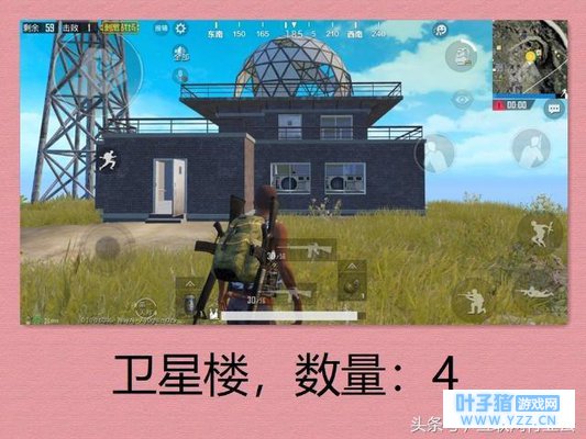 卫星楼又称观测台,由于屋顶有一个大圆球很好辨认,体积不大但是资源点较多,刷新的物资等级也让玩家流口水。它的数量很少只有4处,分别位于机场山顶,G镇电台,山顶废墟与重生岛,每一处都富得流油。虽然不是很好找,但对于打野玩家来说卫星楼就是它们心目中的C字楼,每一处都必须铭记在心,经常刷新的高级物资包括三级头,8倍镜,M24与信号枪。 5.警察局