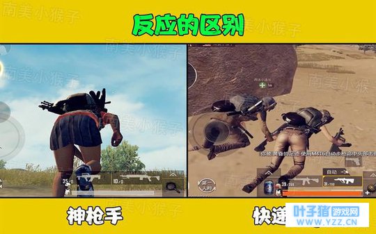 三、反应的区别, 绝地求生刺激战场中,神枪手如果被敌人打中,第一时间就做出判断,蛇皮走位看小地图掩体趴下,一气呵成,逃脱率直线上升!而快递员就不一样了,他们的想法则是,我是谁?谁打我?为什么打我?我这么可爱?小仙女,小鲜肉也不放过!思考之余,还不忘边走边跳或匀速跑动。这样一对比,你不凉谁凉呢?
