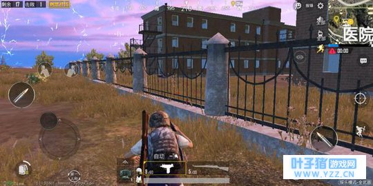 极速战场顾名思义就是迅速战争的模式,在这个模式里面只会开放一个小型区域,和刺激对决是一个类型。每一次比赛一共只有28位玩家参加,八分钟内完成比赛。娱乐模式的地图都是随机选择的,笔者抽到的就是经典地图,安全位置在医院。果不其然跳伞以后大部分人都冲到医院内部开始搜集装备。医院的难度和学校几乎没什么两样,房间多容易藏匿,也容易被人埋伏,所以实战中笔者从来不会去冒险。