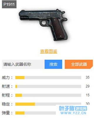 优点:伤害高 缺点:子弹少,换弹慢。 第5名:P1911