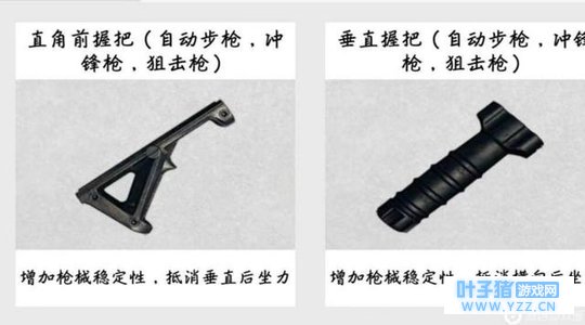 消焰,消除火光,略微增加隐蔽性,毕竟有枪声 消音,部分消除枪声,隐蔽性增加,但是不知道为什么加了消音后枪会变抖(应该不是个人感觉)而且地图上还是会显示枪声,所以个人觉得比较鸡肋 补偿,极大降低后座,个人认为是最佳原则 握把