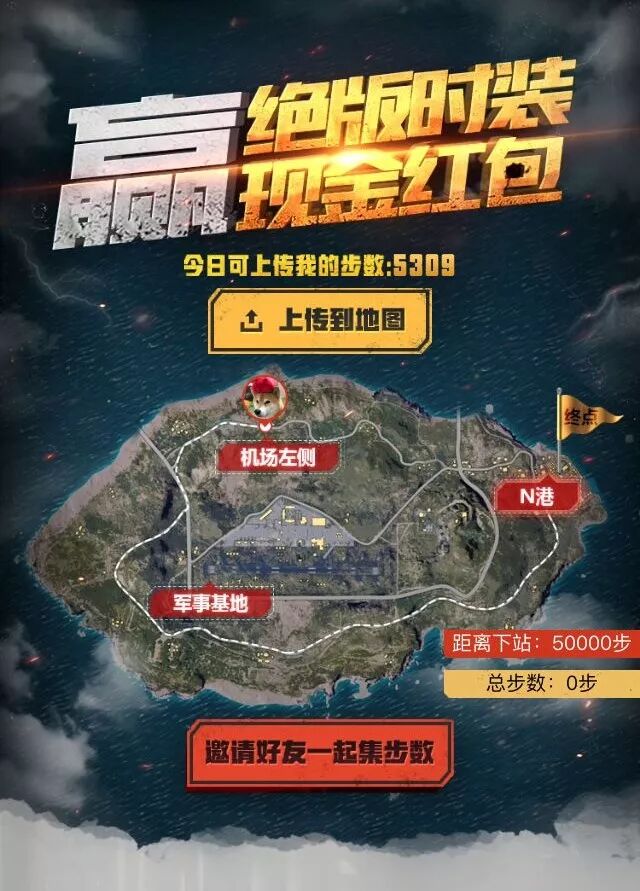 第一步 地图从起始点到终点 一共188000步 ,玩家每日上传自己的 微信运动步数 到地图,地图根据步数展示相对应的距离。