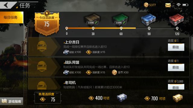 当活跃度达到一定数值就能获得特殊箱子,边吃鸡边做任务,简单快捷,天天开箱不是梦。而且还有每周任务,