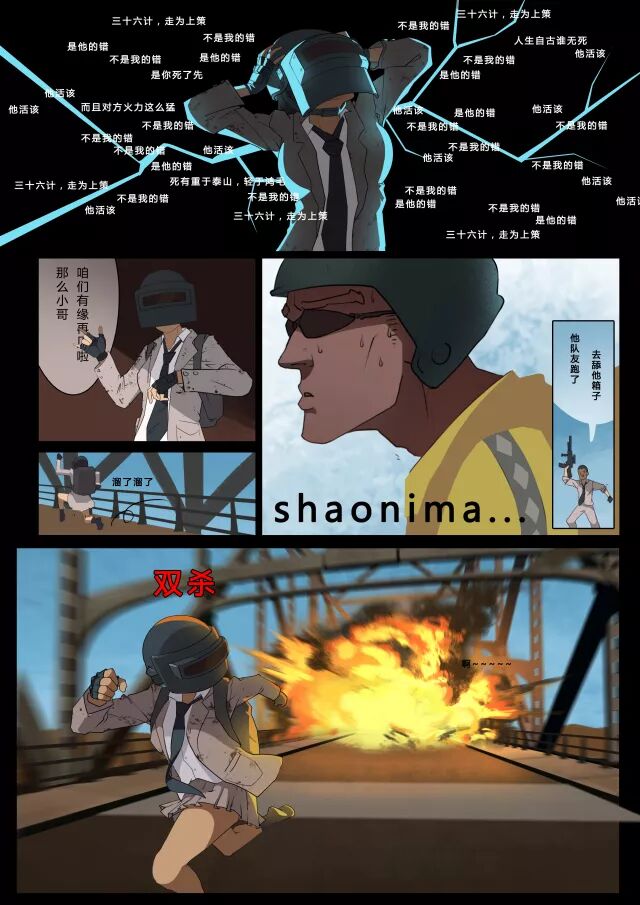 然后漫画小妹完成了 人生中第一次双杀 。吉利哥想,当那位大腿看到漫画小妹扔出手雷的时候,心里应该是这样的。