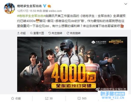 《绝地求生:全军出击》预约数突破4000W,你们准备好吃鸡了吗