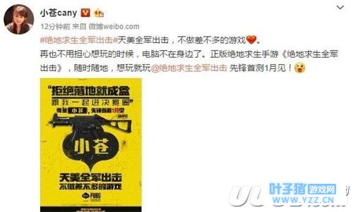 微博大V齐站台 《绝地求生 全军出击》首测即将开启