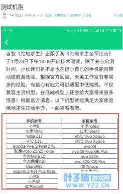 这次首测并非针对全平台上线,只是部分安卓机,官方还特意规定了相应的机型,上图大家自己看——