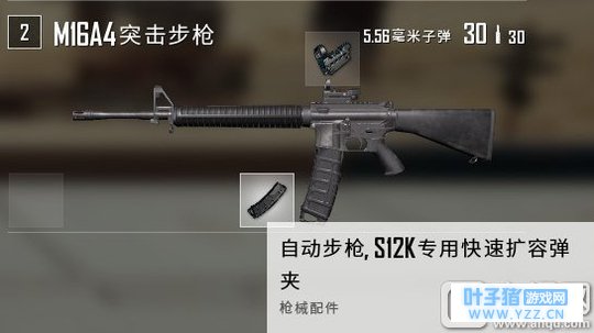 [枪械可搭配配件] 在《绝地求生全军出击》这款正版手游中,所有枪械配件都与端游相同,举个例子:M16A4的可使用配件有3种,分别是:自动步枪弹夹、枪口配件和瞄准镜,手端保持了一致。小编还注意到一个细节点,手游中的M16A4与端游一样,不可以装备8倍及以上倍数的瞄准镜,可以说是很细致了。