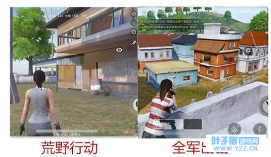 荒野行动 【建筑纹理细节】 如果你细看《绝地求生全军出击》的建筑,就可以留意到其建模程度相当细腻,墙面纹理、破损细节都清楚看见,不仅较高程度还原吃j端游,更贴合生活痕迹,让人沉浸感大增。而《荒野行动》,其建筑近看时基本没有纹理效果,无论什么墙面都是滑溜溜一片,给人感觉相当简陋,同时建筑外观太过于平整,脱离了现实生活,给人一种很假的感觉。