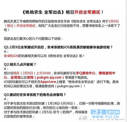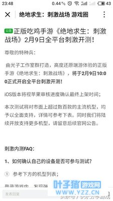 本次测试还是有一些手机是玩不了的,官方有列出可以适配的手机型号,想来现在的大部分手机应该都是可以玩的,除了老古董之外。2月9日10点基本就可以下载来玩了,正版吃鸡手游来袭,你准备好了吗?