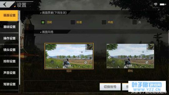 这里说说“全军出击”画质方面,官方说是虚幻4打造的,画质确实做得还算可以,至少比隔壁的吃鸡手游画质会好,低端的手机游戏过程中会有比较大的卡顿现象。当成画质有三档供选择,一般机型都可选择“标准”特效,高端机型方能开“中高“特效,”高“特效没开放。两面风格有“炫彩”和“柔和”两种选择,超哥更喜欢“炫彩”风格,画面更加艳丽明亮,感觉游戏过程中更容易发现远处目标。