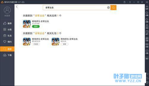 二、打开雷电模拟器,在雷电游戏中心搜索“全军出击”进行下载,或通过模拟器右侧栏目里面的APK安装功能打开下载到电脑上的游戏安装包。
