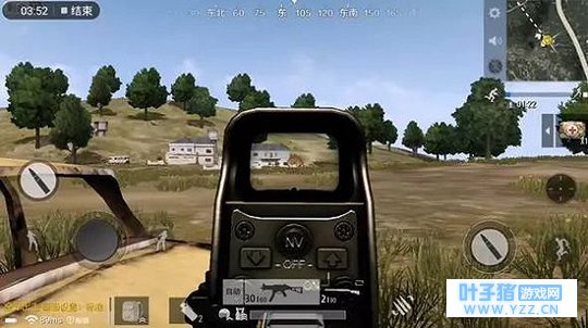 全息镜会遮挡视野,在端游里,有的玩家宁可用机瞄也不会用全息(图片为标准画质下截图) 比起端游,玩家在《全军出击》中很难因为跑毒而被淘汰。游戏自带安全区方向提示、进入毒圈也有非常醒目的自动引导。同时,车辆刷新点更多,主要道路两旁很容易就能发现载具。玩家接近车辆时,还会出现自动提示,很少会出现找不到车而被毒死的尴尬场景。